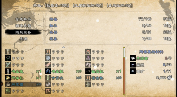 楼主学了太玄了,此时也在门派左冷禅处学了4层的辟邪内功。辟邪内功要与左右冷禅好感40,需要送御寒帽。下图是御寒帽需要的材料,城镇建设的居民那里就可以搞到很多材料