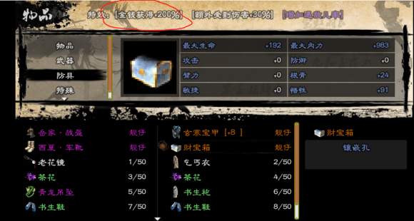令人发指的楼主接着跑到平安镇打沈万三,沈万三只要把他第一次的血打没就会掉财宝箱,然后最后打不过沈万三,重伤但是获得了财宝箱。财宝箱装着打怪掉钱双倍,楼主也不知道拿这么多钱干嘛