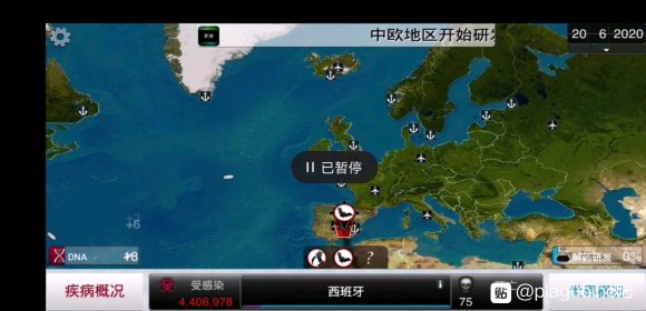 从此我们从阿尔及利亚进入欧洲,阿尔及利亚→西班牙殷红狂怒300w+再走(此地可能因为只有一个传播属性且接壤邻国少很难传染)→法国→英国→德国→意大利→中欧殷红狂怒100w(单一环境属性难传播)→波兰→芬兰→瑞典→挪威