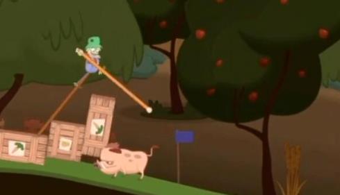 这关刚开始可以先分开腿站在箱子上保持一下平衡,之后快速通过。过了检查点之后我们会看到几个箱子,之后会有猪猪冲过来,大家需要保持平衡不要摔倒了。猪猪冲完之后就好过多了,基本上都能快速通关。注意最后落下的时候保持平衡就可以了。
