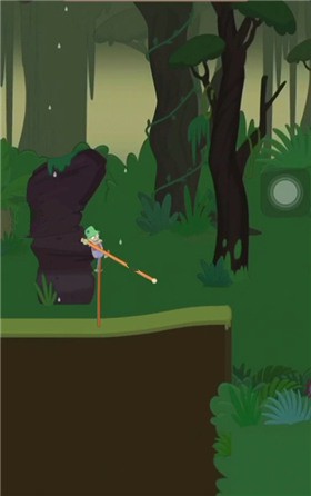 第三段:两只脚位于木头的左侧,利用石头弹过去;