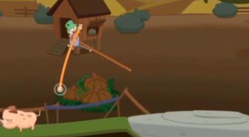 刚开始的时候就会有猪冲过来了,速度非常快玩家们要赶紧躲避哦,之后过了检查点需要踢茅草,注意不要摔倒了。随后踩机关过石柱,石柱和之前一样尽量踩在中间的位置比较好。