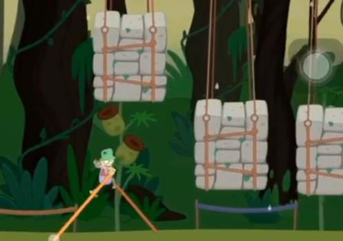 刚开始几个升降的石头大家只需要在抬起的一瞬间快速通过就可以了,之后的滚石同样采用快速通过的方法。另外悬空的木板是一个关键,因为比较小而且还会晃动,玩家们尽量踩木板中间的位置哦,只要过了木板就能到终点了。