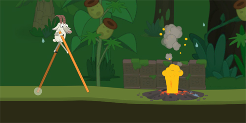 第一个难点在火山喷发的地方,而且喷出来的频率是很快的,如果你在这个位置上停顿了的话,那么直接会被烧到的。所以我们要在它落下的时候,快速通过,才可以完美通行。