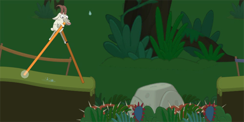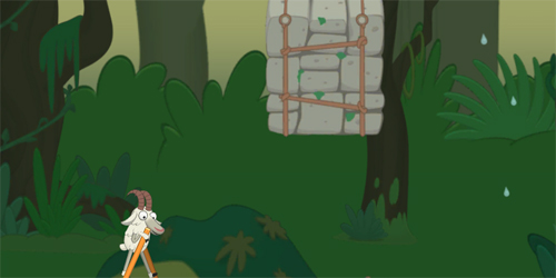第二个难度的点就是这个石头上,因为有高低的差距,所以需要调整好木杆之间的角度和距离,不然你一只脚迈出去了就失去了平衡。记住是一只脚在岸上,一只脚在石头上,然后再另外一只脚迈到另外一边的岸上。