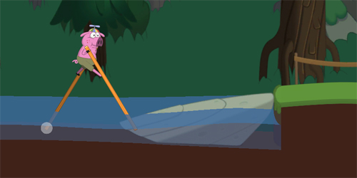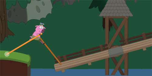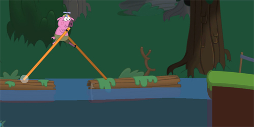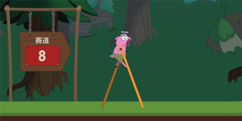 第三个难度的地方就是过河的这个浮木上,浮木会移动的,所以你们不能停留太久,要快速通过,不然你的两个木杆要劈叉了。在看准时机之后就迅速上岸就可以了。