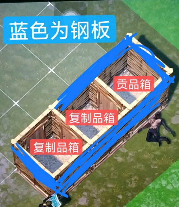 再以萌新都想要的气瓶和钢板举例,如图布局,在废车里面放5组钢板五个气瓶,这里我们要明确,一个气瓶价值低于一组钢板,然后在复制箱里再放5组钢板,及四个高于气瓶价值复制品(也可以是四组钢板),这四个放什么,放多少,大家自己看,我只是举个例子。原理解释一下,npc会拿更高价值东西替换低价值东西,那么npc先拿废车里所有,然后到复制品箱,由于第一排钢板价值高于气瓶,那么npc会放下气瓶在复制品箱里,拿走五组钢板,此时npc手里有5+5组钢板,这时,他再拿下排4个高价值物品,也就是5+5+4不到15个,他不会先溜走,会继续开贡品箱,于是复制成功。经过这个方法,5个气瓶在复制箱,14个其他复制品在贡品箱,巧妙的达到了一次复制19个物品,无论npc拿15个贡品还是20个贡品,都成立。