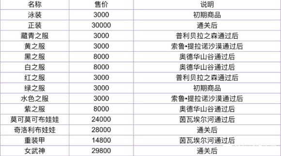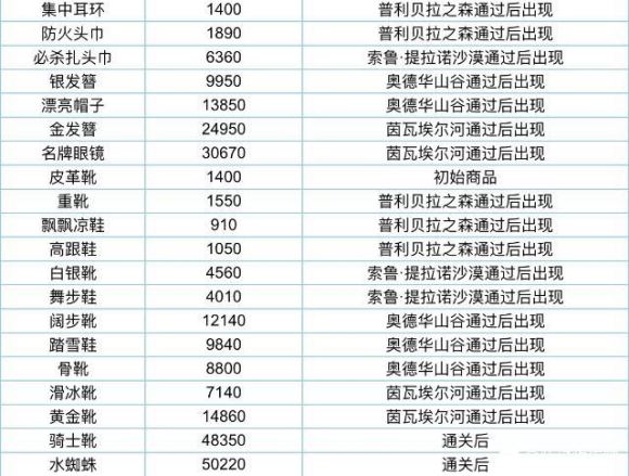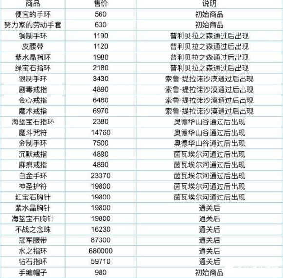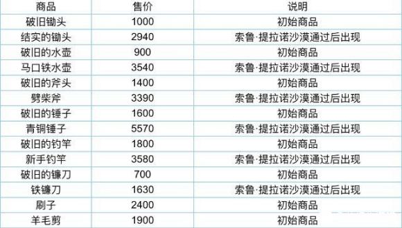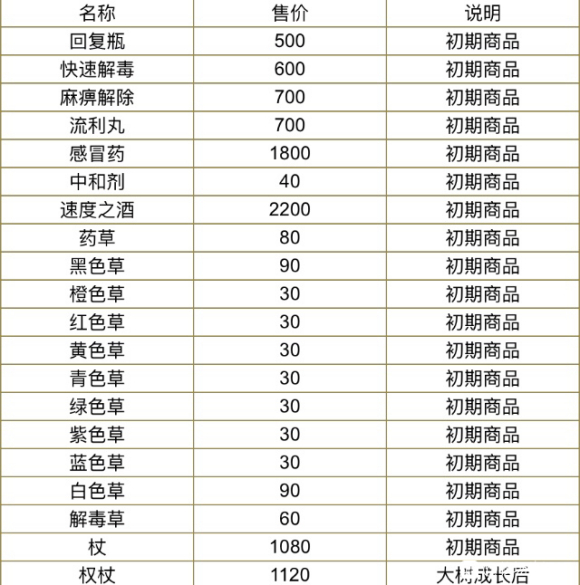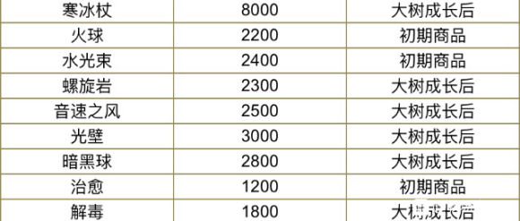 [注]其他魔法在大树成长后每天随机出售1~4个