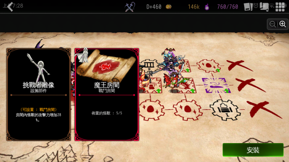 460天才开到 【挑战者雕像】,魔王房间buff来源有限,攻击力是不错的选择,另一种选择行动力。