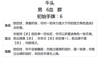 牛头 准备阶段就是2伤害。界马超&界关羽 体质,不断杀,拆一张牌,还大概率变成自己的。断杀基本飞舞。