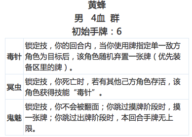 黄蜂 没有那么毒,有点类似甘宁+反向月英。 先打他的小弟。