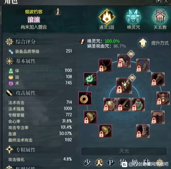 3.属性取舍:目前版本建议不论多少急速,天光保障4千魔还有700以上专精,专注根据boss来,会心随缘,优先级:千魔,专精,急速阈值,强度,会心专注