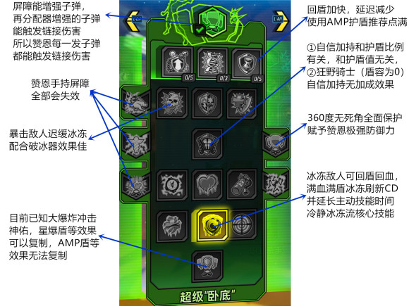 注:①动弹不得只要暴击敌人就有几率冰冻敌人,无视护盾血量