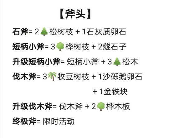 升级版短柄小斧需要3?桦树枝 + 2燧石子 + 3?松木,冷却几分钟
