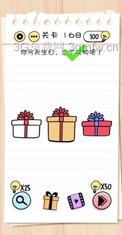 你今天生日选个礼物吧是谜题急转弯 《BrainTest》第168关的问题,很多网友不知道答案是什么,下面小编给大家带来谜题急转弯 《BrainTest》第168关攻略。