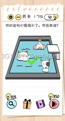 你的宠物们要溺水了你会救谁是谜题急转弯 《BrainTest》第174关的问题,很多网友不知道答案是什么,下面小编给大家带来谜题急转弯 《BrainTest》第174关攻略。
