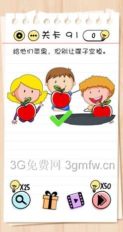 给他们苹果但别让碟子空掉是谜题急转弯 《BrainTest》第91关的问题,很多网友不知道答案是什么,下面小编给大家带来谜题急转弯 《BrainTest》第91关攻略。