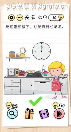她把蛋煎焦了让她提起心情吧是谜题急转弯 《BrainTest》第69关的问题,很多网友不知道答案是什么,下面小编给大家带来谜题急转弯 《BrainTest》第69关攻略。