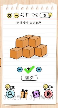 有多少个立方体是谜题急转弯 《BrainTest》第72关的问题,很多网友不知道答案是什么,下面小编给大家带来谜题急转弯 《BrainTest》第72关攻略。