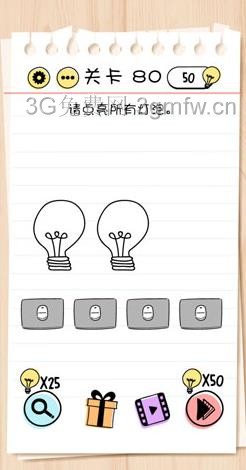 请点亮所有灯泡是谜题急转弯 《BrainTest》第80关的问题,很多网友不知道答案是什么,下面小编给大家带来谜题急转弯 《BrainTest》第80关攻略。