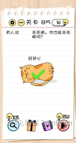 有人说好奇心杀死猫你也能杀死猫吗是谜题急转弯 《BrainTest》第85关的问题,很多网友不知道答案是什么,下面小编给大家带来谜题急转弯 《BrainTest》第85关攻略。