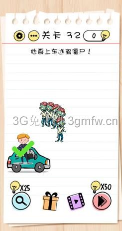 他要上车逃离僵尸是谜题急转弯 《BrainTest》第32关的问题,很多网友不知道答案是什么,下面小编给大家带来谜题急转弯 《BrainTest》第32关攻略。