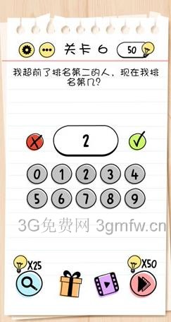 我超前了排名第二的人现在我排名第几是谜题急转弯 《BrainTest》第6关的问题,很多网友不知道答案是什么,下面小编给大家带来谜题急转弯 《BrainTest》第6关攻略。
