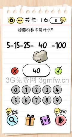 答案:将石头移开,露出后面隐藏的数字,40。