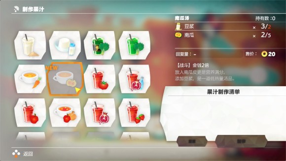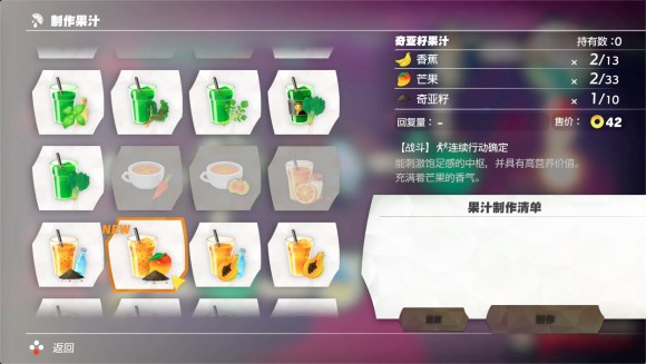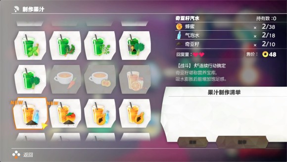 奇亚籽果汁需要1个奇亚籽,奇亚籽汽水需要2个奇亚籽。