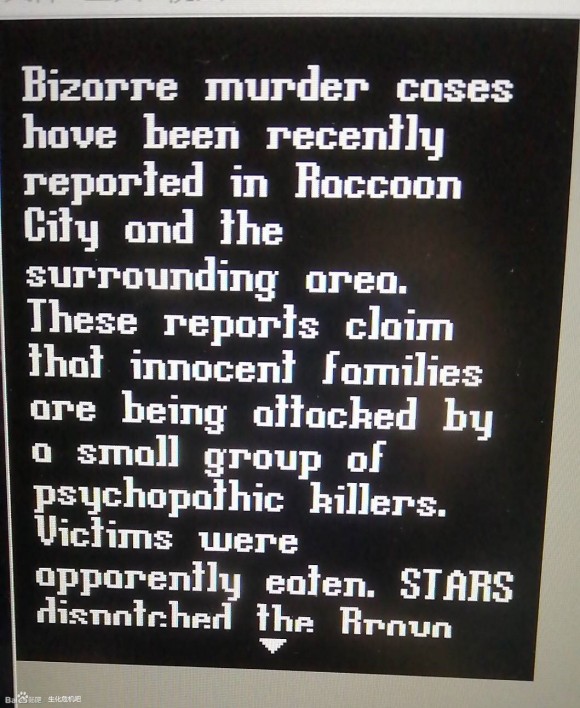 正在遭受一小撮心理变态杀手的袭击。受害者有明显被咬的痕迹。STARS派出了Bravo队去调查,但很快就失去了联系。STARSAlpho队被派去寻找Bravo队,在洋馆外发现了他们的直升机残骸,在检查直升机时,一群变异的狗袭击了队伍。许多成员