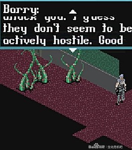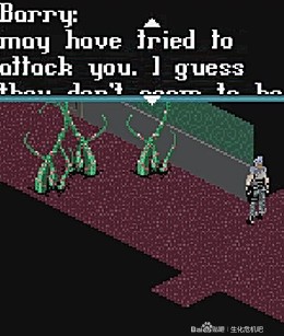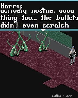 巴瑞:对不起,我以为它试图要攻击你。我猜它们并没有敌意。好事。。。子弹甚至没有把它们擦伤 吉尔:我宁愿你朝我开枪也不愿变成变异触须 巴瑞:哈哈。好吧,即使它们没有攻击我们,它们也让我不安。我将去这间卧室里 这边路被触须堵住了先去卧室吧