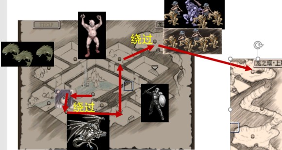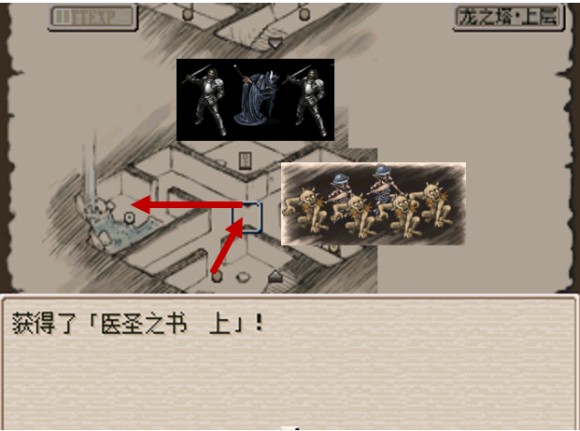 之后先按上图的路线绕回去,调查墙壁,把能不用战斗就能拿的经验值拿到。