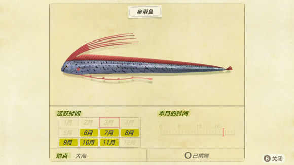 动物森友会《AnimalCrossing》皇带鱼怎么钓? 参考答案: 我是南岛,偶尔去朋友的北岛钓鱼,都钓到六条以上了,真的不算难,难度小于矛尾,更小于桶眼鱼远远小于码头鱼类。 老友网www.andlaou.com免费为你分享