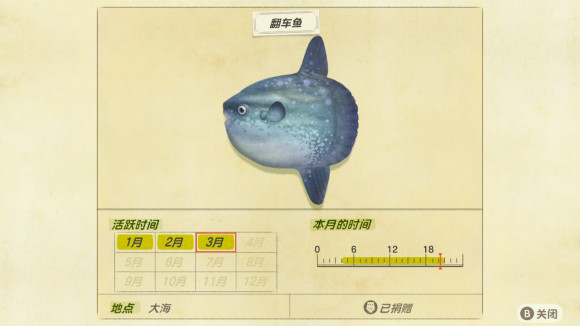 除了吸盘鱼,翻车鱼最简单,活动时间是4am-9pm,白天出没。