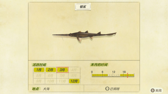 动物森友会《AnimalCrossing》锯鲨/双髻鲨/鲨鱼/鲸鲨/吸盘鱼和翻车鱼怎么钓?