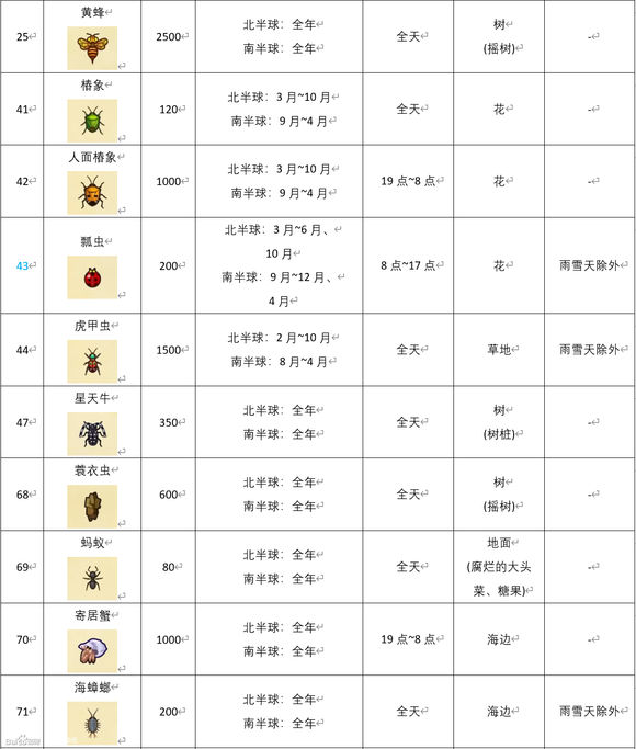动物森友会《AnimalCrossing》3月北半球虫类图鉴
