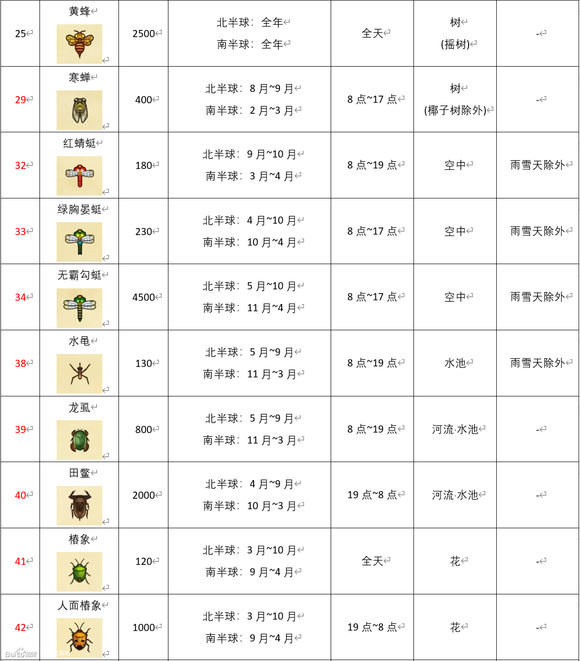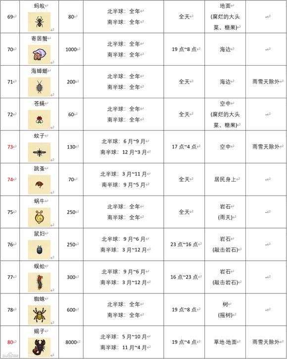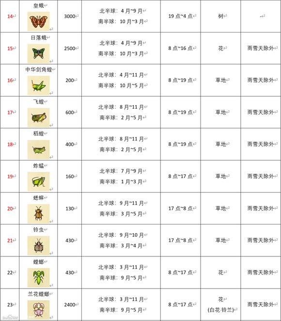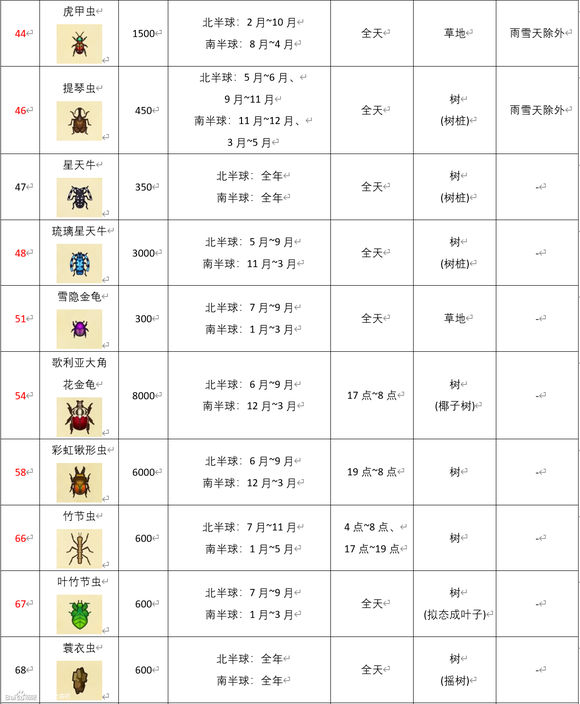 动物森友会《AnimalCrossing》3月南半球虫类图鉴