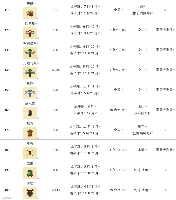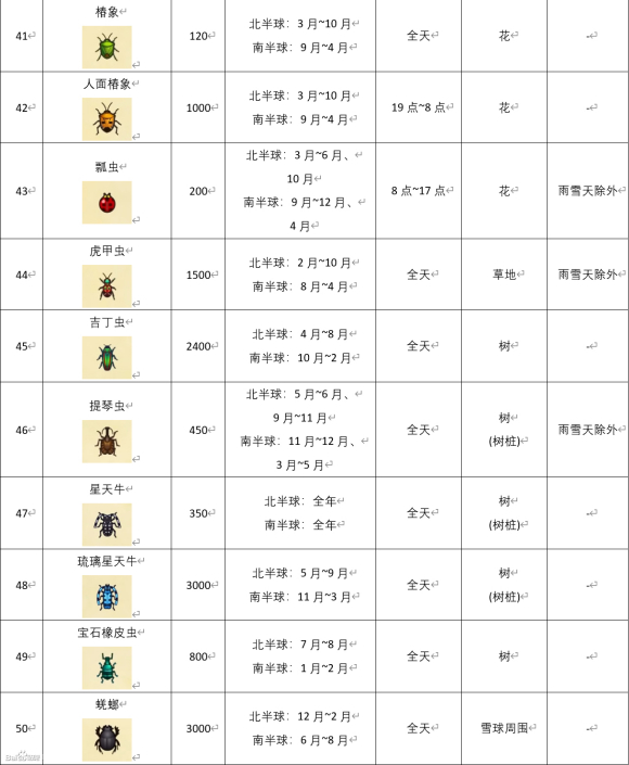 动物森友会《AnimalCrossing》所有虫类图鉴