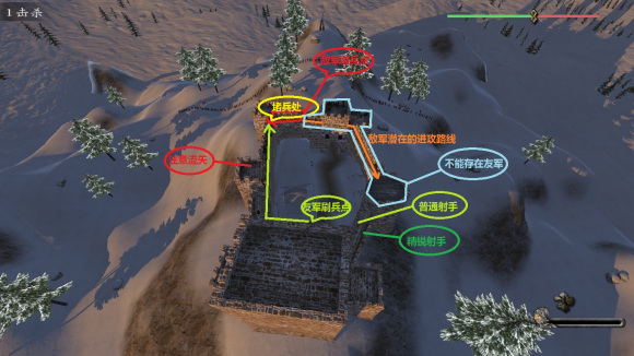 2、 偶尔会有友军从右边反击敌人(即橙色路线的反向),(无论是射手还是步骑)请无情地击杀他们;
