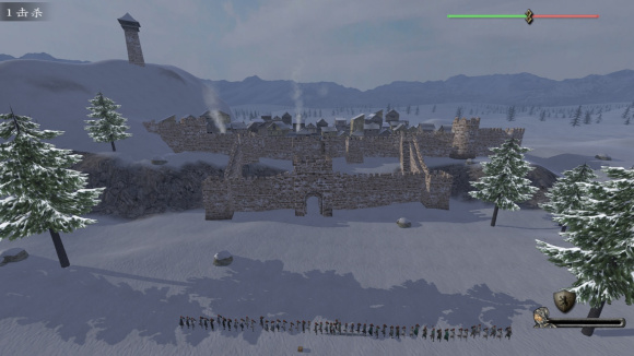 ◆瓮城,一条窄梯和一块长宽板共2条进攻路线,长宽板处的堵口效果一般,并且容易遭受敌军远程攻击;有4个射击平台,平台上靠外侧有被射击的风险,平台上射手的射击欲望一般;城墙上、城内狭窄,指挥空间不大;需要一定数量射手(采用建议的守城策略,需要精锐射手10人,一般射手20人);对抗2倍数量以下的敌军可以尝试守(通常守军的精锐度不是很高,因此直面玩家需谨慎,以下各城、堡的建议也是如此,不再赘叙)。