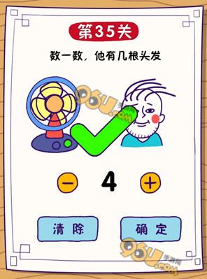 数一数他有几根头发是《这题太难了》第35关的问题,很多网友不知道答案是什么,下面小编给大家带来这题太难了第35关攻略。 问题:数一数他有几根头发? 答案:4,(点击风扇红色按钮) 。 老友网www.andlaou.com免费为你分享