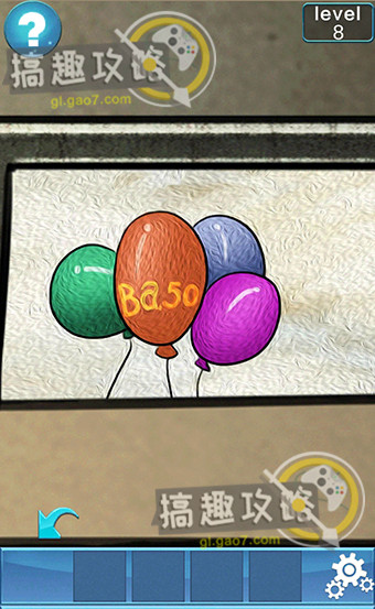100门逃脱挑战2第8关怎么过? 100门逃脱挑战2攻略第8关 查看到气球上的Ba和50的数字提示。 在地上对照Ba看到56的数字提示。 最后结合提示在密码器上输入5650即可打开门。 老友网www.andlaou.com免费为你分享