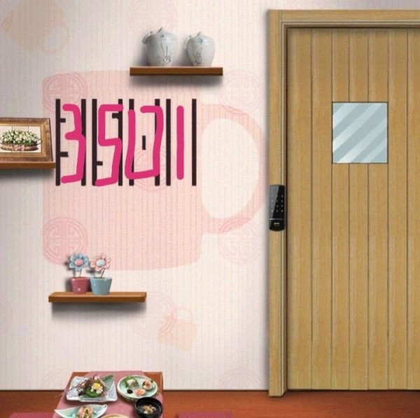 15,点水池旁边的按钮,把按钮按到微波炉上,点开微波炉,里面有1个盒子,3个茎,2个草莓,3片叶子,按照微波炉旁边的纸条上的顺序输入密码