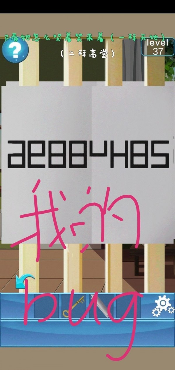 32,捡起钥匙,打开上面的橱子,会出现一个纸条,不用捡它,点击右边的柜子,麻烦螺丝刀,用螺丝刀把下面的密码箱打开,拿到钥匙