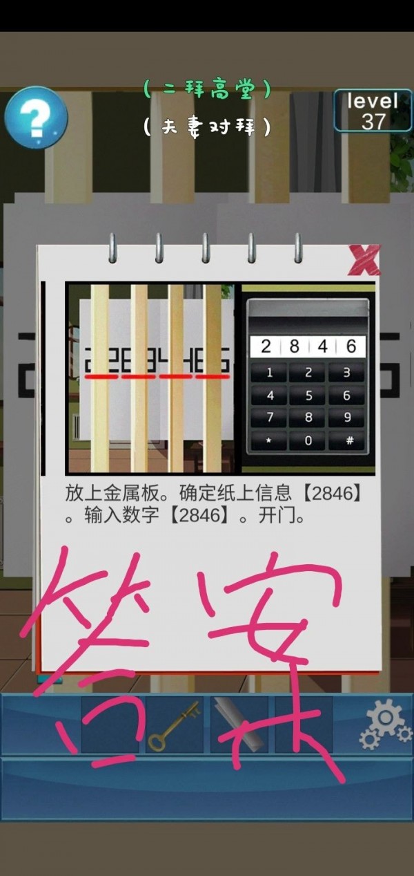 34,先把左上的对对碰点完,可以一碰二,最后剩下颗金牙,把金牙放在桌子的秤上,称出5131,然后输入密码过关