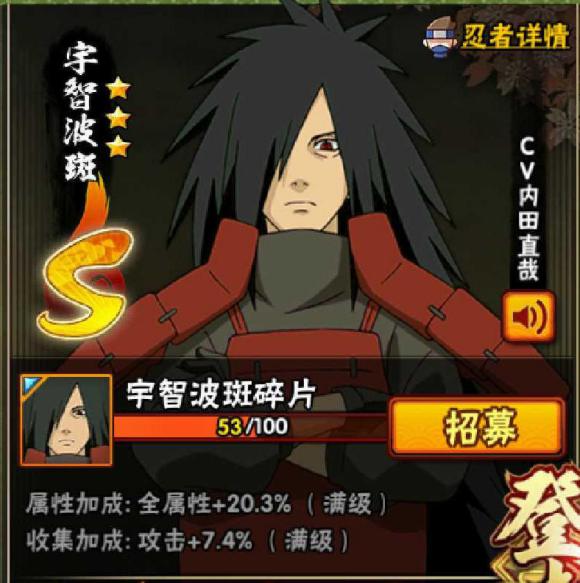 今天,我给大家讲解一下游戏里的新忍者:宇智波斑,多重变化的技能使斑的小技能多达5个,战斗时与初代,二代等均有战斗彩蛋和奥义彩蛋。