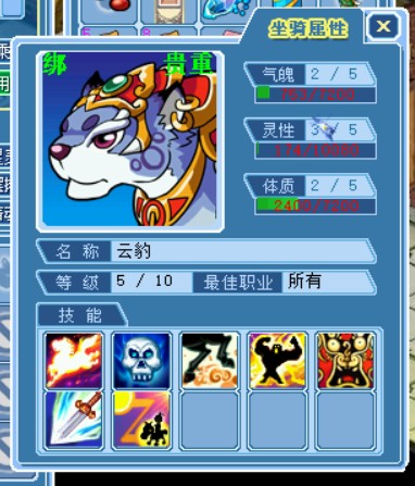 高7的喂养,3个属性分别养到2,5,5,先喂满5,再喂2。最后在帮派点坐骑技能,点攻击加成和属性加成两项,想做剑魔的不用点攻击加成。速度加成可点可不点,毕竟组队的时候,速度取决于最慢的那个。