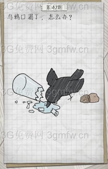 乌鸦口渴了怎么办是《最囧游戏4》第47关的问题,很多网友不知道怎么过,下面小编给大家带来最囧游戏4第47关攻略答案。 问题:乌鸦口渴了怎么办? 答案: 摇手机。 老友网www.andlaou.com免费为你分享