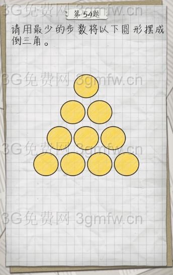 请用最少的步数将以下圆形摆成倒三角是《最囧游戏4》第54关的问题,很多网友不知道怎么过,下面小编给大家带来最囧游戏4第54关攻略答案。