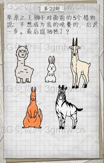 草原之王狮子对面前面的5个猎物说:不想成为未的晚上的,后退一步。最后谁牺牲了是《最囧游戏4》第22关的问题,很多网友不知道怎么过,下面小编给大家带来最囧游戏4第22关攻略答案。
